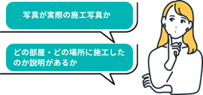 施工実績を具体的に見せていない業者は、技術に自信がない可能性があるという点は、必ず覚えておきたいポイントです。